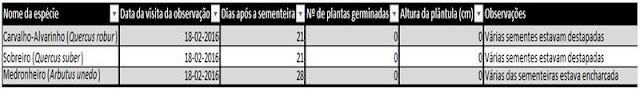 No passado dia 18 de Fevereiro o Clube de Ciências Tecnologias e Ambiente fez o levantamento numa tabela de registo do estado da sementeira.